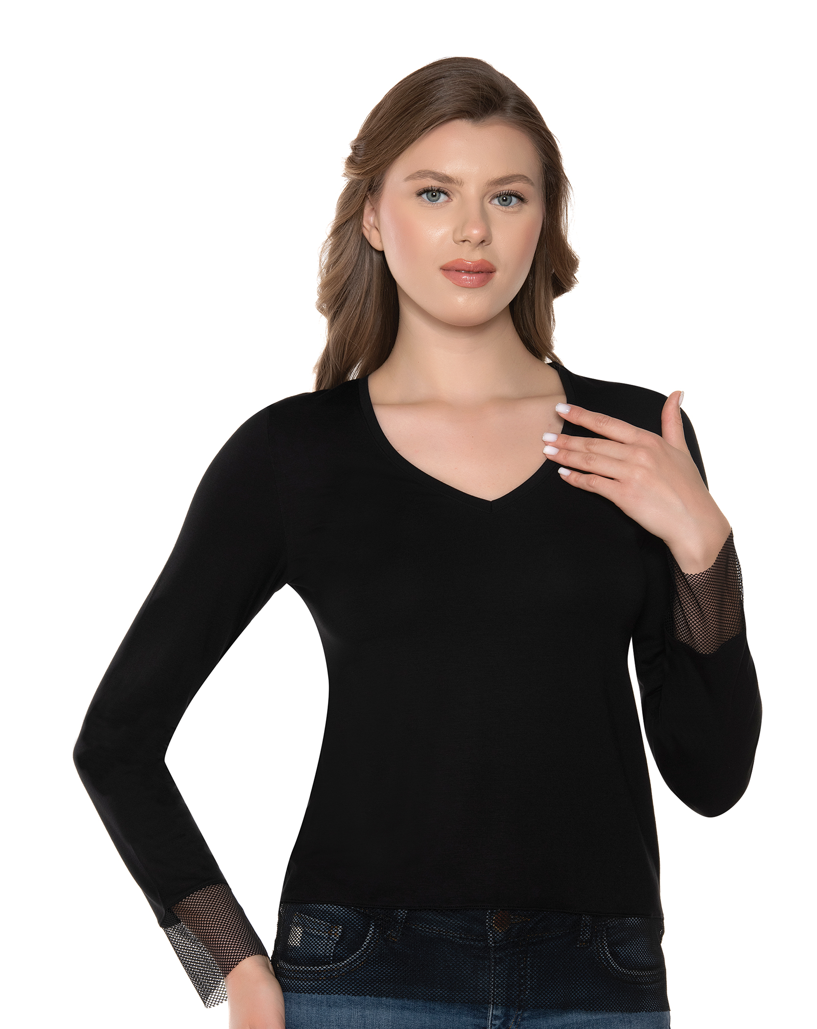 Bluză cu dantelă cu mânecă lungă – Belinay 8502