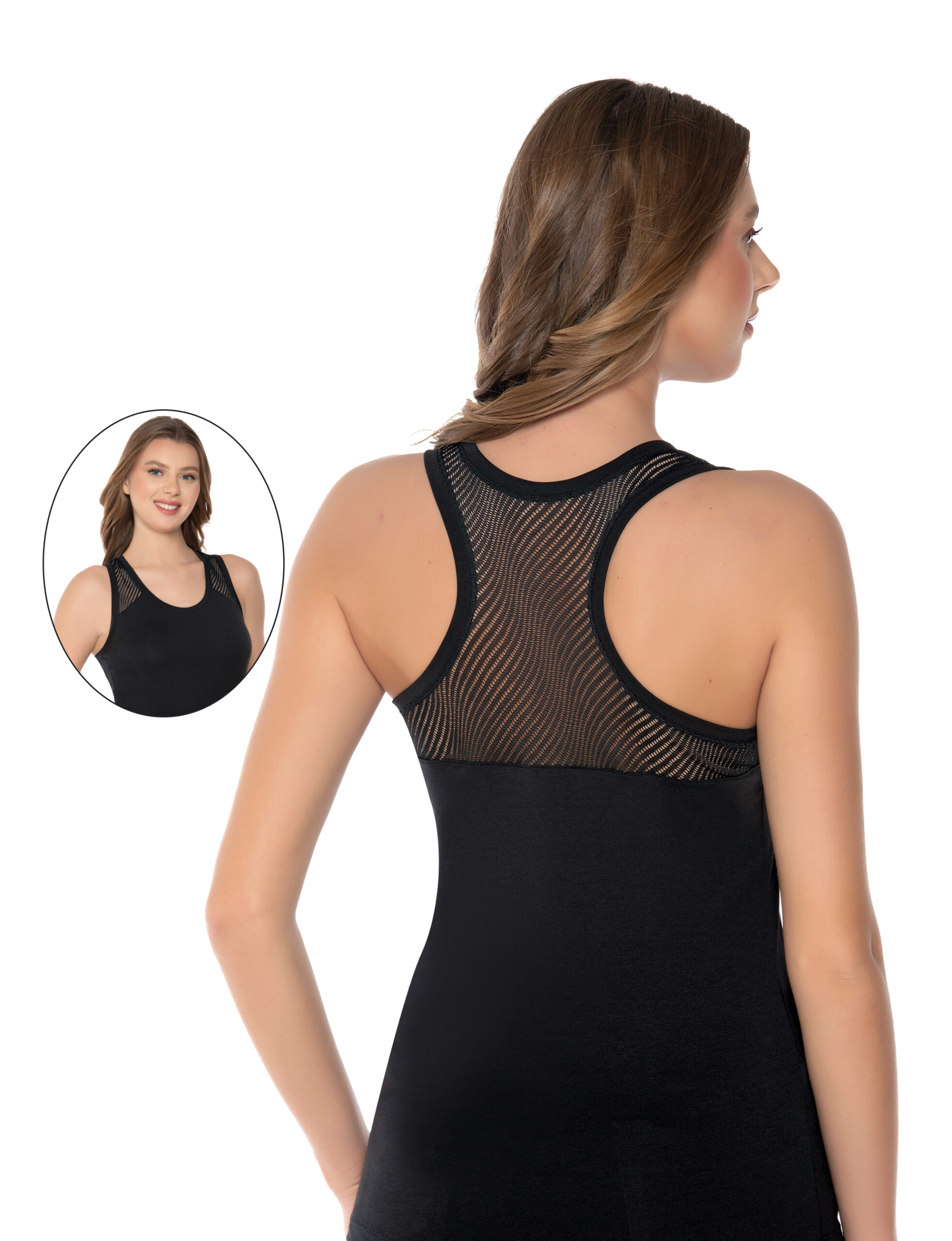 Maioul cu bretele din dantelă este fabricat dintr-un amestec de 96% vâscoză și 4% elastan. Această combinație de materiale asigură un confort extraordinar, fiind extrem de moale și plăcută la atingere. Designul cu bretele din dantelă adaugă un element feminin și elegant, potrivit pentru a fi purtat sub alte haine sau ca parte a unui outfit de vară relaxat și rafinat.