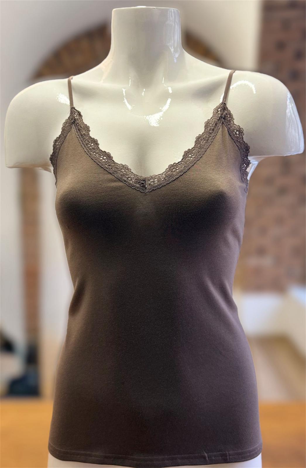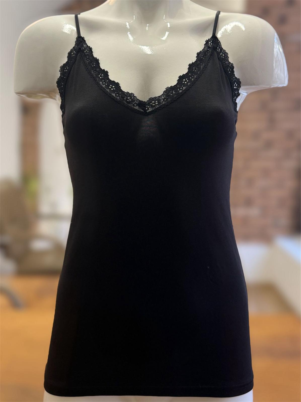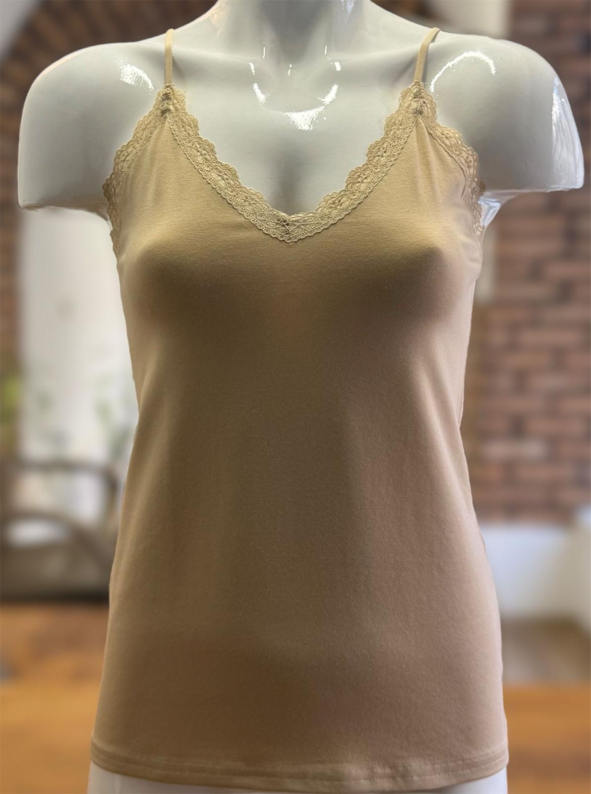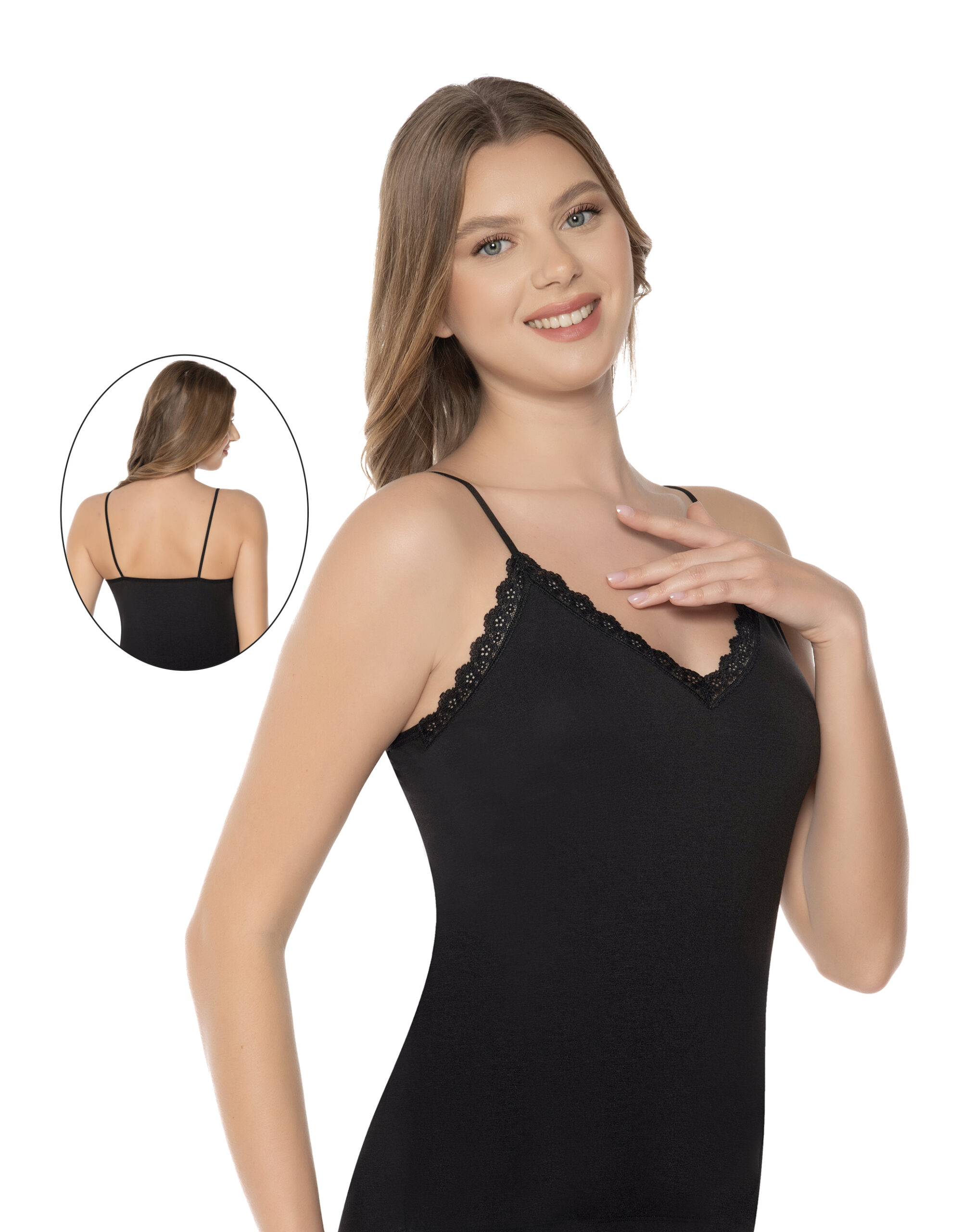 Eleganța și confortul se întâlnesc în acest maiou cu dantelă disponibil în culorile negru, alb, bej deschis (nud) și bej închis (vizon). Fabricat dintr-un amestec rafinat de 47% modal, 47% bumbac și 6% elastan, acest maiou oferă o senzație plăcută pe piele și o potrivire impecabilă. Modalul și bumbacul conferă respirabilitate și finețe, în timp ce elastanul adaugă elasticitate și flexibilitate.